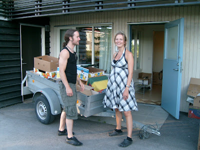 Our first visitors: Eldest son and daughter-in-law from Oslo. They are moving to Stavern these days, and they could use some of our carton boxes. They are expecting their firstborn (our 4th grandchild) in July.